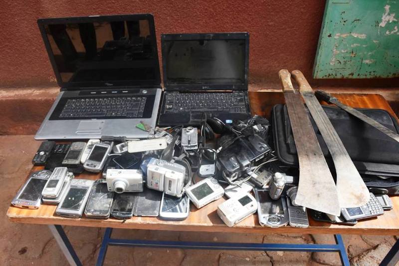 La Brigade de recherche du Commissariat Central de Police de Ouagadougou a pu saisir entre les mains des bandits, trois machettes, 54 portables, huit appareils photos, deux ordinateurs portables, trois IPAQ, trois motocyclettes, une télé écran plasma, un GPS, deux plaques solaires, une bouteille de gaz.
