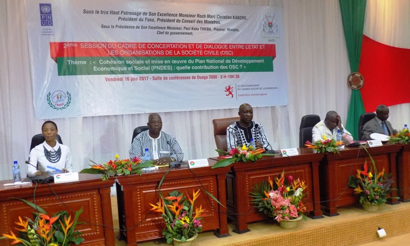Le deuxième cadre de concertation Etat/OSC, financé par le PNUD, regroupe plusieurs centaines de participants à Ouagadougou. Venues des 45 provinces du Burkina, les OSC, selon le Président du Conseil national des OSC, Jonas Hien, apporteront une vision claire de leur adhésion et de leur contribution pour une mise en œuvre réussie du PNDES.