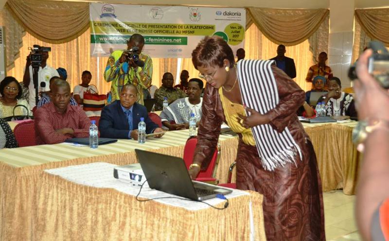 www.competences-feminines.bf est une nouvelle plateforme web pour la gestion des données sur les compétences féminines. Le clap du lancement de ce site web a été donné le 28 juillet 2017 par la ministre de la femme, de la solidarité nationale et de la famille, Laure Zongo/Hien.