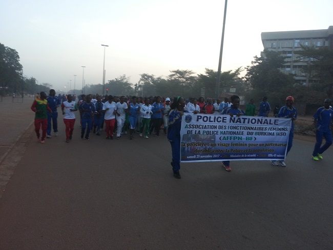 L’Association des fonctionnaires féminins de la police nationale a organisé un cross dans la matinée du samedi 25 novembre 2017 dans certaines artères de la capitale burkinabè. L’objectif pour ces policières est de dénoncer les violences faîtes aux femmes. Elles militent aussi pour une cohésion entre forces de défense et de sécurité et aussi avec la population.
