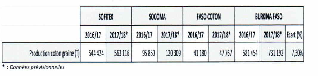Le chiffre de 563 000 tonnes de coton graine annoncé dans la presse comme étant la production nationale attendue concerne plutôt la production de la zone de SOFITEX et non celle de l’ensemble des trois sociétés cotonnières du Burkina Faso dont la SOCOMA et FASO COTON.