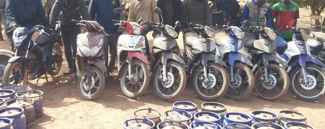 Au total, le butin saisi aux mains des deux bandes est composé de 14 vélomoteurs de diverses marques, un tricycle, 149 bouteilles de gaz dont cent 106 bouteilles vides de 6 kg de marque Sodigaz et Shell. 42 bouteilles chargées de 6 kg, une bouteille vide de 12 kg de marque Oryx et un téléviseur écran « 32 » plasma.