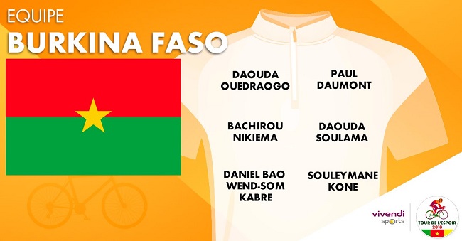 Daouda Ouédraogo, Bachirou Nikièma, Daniel Bao Wend-Som Kabré, Paul Dumont, Daouda Soulama, Souleymane Koné sont les représentants du Burkina Faso à la 1ère édition du Tour de l’Espoir, considéré comme le premier championnat d’Afrique des Nations de cyclisme.