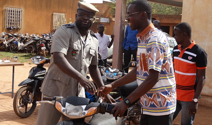 Compaoré Salfo a eu du mal à reconnaitre la sienne lors du constat d’usage après les formalités : «Ils avaient tout changé. La peinture. Tous les signes qui prouvaient que c’est ma moto, constate-t-il. Je remercie la police, tous ceux qui ont contribué ».