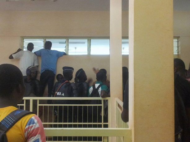 Cris, bousculades, coups violents à la porte et aux fenêtres. Les étudiants sont remontés.