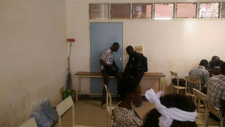 C’est dans une atmosphère particulièrement tendue que nous assistons à une conférence de presse organisée par la Fédération Estudiantine et Scolaire pour l’Intégrité au Burkina Faso de l’Université de Ouaga 2 (FESCIBF/UO 2) en collaboration avec l’Union Nationale des Etudiants du Faso de la sous-section de la Science Economique et Gestion (UNEF/SS-SEG). Porte barricadée par une table, la conférence peut commencer.