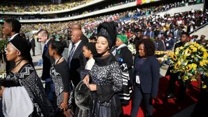 Recouvert du drapeau national de l’Afrique du Sud sous une forte escorte de motards, le cercueil contenant la dépouille de Winnie Mandela a fait son entrée dans l’enceinte de ce stade sous les acclamations des milliers de personnes venues lui rendre un dernier hommage digne d’une combattante pour l’égalité raciale dans son pays.