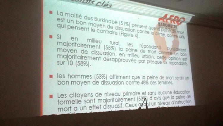 Les résultats d’un sondage réalisé en septembre dernier par le Centre pour la gouvernance démocratique (CGD) et l’équipe d’Afrobaromètre au Burkina dirigée par l’Institut pour la gouvernance et le développement (IGD) reflètent les positions partagées lors des tournées de la commission constitutionnelle dans les régions du pays pour présenter le projet de Constitution. 54% de l’échantillon de 1 200 personnes sondées estiment que le nouveau code pénal devrait « conserver la peine de mort pour des crimes violents » contre 40% car justifient-elles, « la peine de mort a non seulement un effet dissuasif pour le crime mais aussi qu’elle devrait être conservée par la loi pour des personnes commettant certains crimes violents ».
