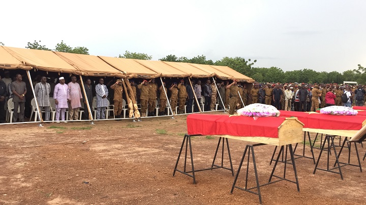 Les sept soldats burkinabè ont été conduits le vendredi 31 août 2018 à leur dernière demeure par leurs familles, amis et frères d’armes. Au cimetière municipal de Gounghin, sous une fine pluie, les disparus ont reçu les honneurs militaires avant d’être inhumés. Bien avant, ils ont été décorés. Entre autres étaient présents, le ministre de la sécurité Clément Sawadogo, le ministre de la défense Jean Claude Bouda, le Chef d’Etat-major général des armées, le général Ouamarou Sadou.