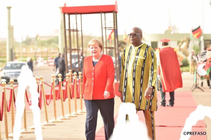 Angela Merkel effectue une visite de 48 heures au Burkina Faso. Arrivée le 1er mai 2019 avec une forte délégation, elle a été reçue en audience par Roch Kaboré, Président du Faso, à Kossyam dans la soirée. Les deux autorités ont échangé sur la coopération bilatérale entre les deux pays. La vague d’attaques terroristes que vit le Burkina Faso depuis quelques années a également été au cœur des échanges.