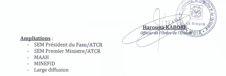 Message du ministre du Commerce, de l’Industrie et de l’Artisanat, Président du comité de haut niveau du suivi de la relance de la production cotonnière du Burkina Faso, relatif aux mesures prises par le gouvernement