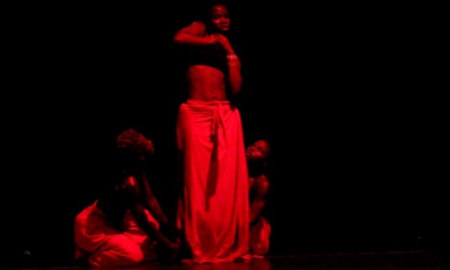 Les maux sont ici exprimés par le corps. Dans la pénombre du théâtre « Al Hamra » de Tunis, vêtues de jupes longues rouges et bustiers noirs, les trois jeunes danseuses, Florence Gnarigo, Tatiana Gueria Nade et Kallou Victoire Zegbu portent les douleurs des femmes dans l’expression corporelle.