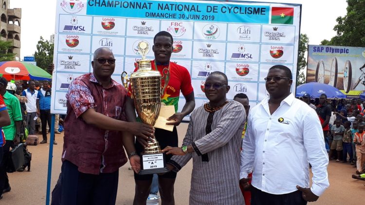 Le sociétaire de l’AS Bessel Salfo Bikienga a remporté l’édition 2019 du championnat national de cyclisme. Il a devancé tous ses concurrents sur la ligne d’arrivée le dimanche 30 juin 2019 sur l’Avenue Charles de Gaulles de Ouagadougou. Les forçats de la route ont parcouru les 180,300 en 4h57mn775s, soit une vitesse moyenne de 36,308 km/h.