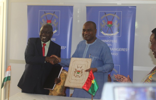 Les ministres des affaires étrangères et de la coopération du Burkina et du Niger ont procédé ce mercredi 10 juillet 2019 à Ouagadougou à la signature d’un accord-cadre transfrontalier de coopération dans différents domaines de la vie quotidienne des deux peuples, burkinabè et nigériens.
