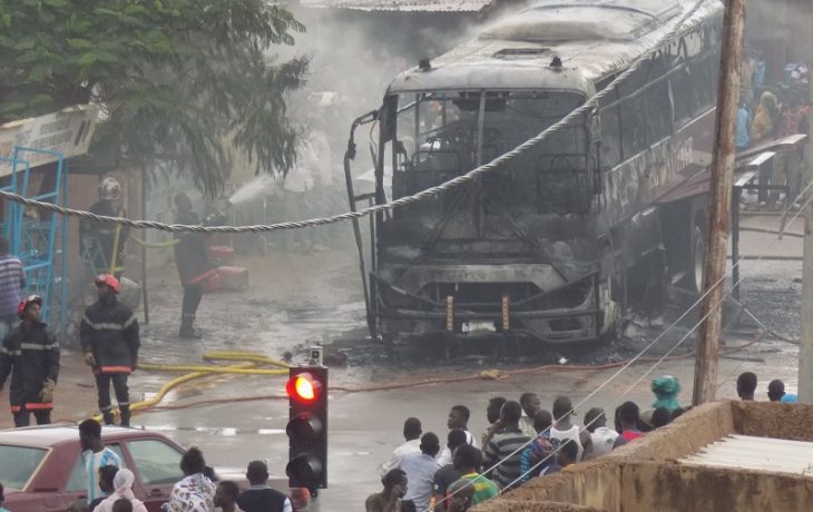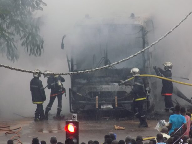 Ce samedi 7 septembre 2019 aux environs de 16h, un véhicule de transport en commun a pris feu au quartier Larlé à l’arrondissement 2 de Ouagadougou. L’incident a eu lieu au niveau des feux tricolores installés non loin d’une station-service.