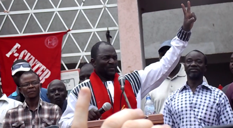 11h 20. « Est-ce que le général Bassolma va bien ? », crie un jeune, dans la foulée. Comme par pure coïncidence, dans les instants qui suivent, le Président du mois des centrales syndicales refait surface, sous des ovations nourries.