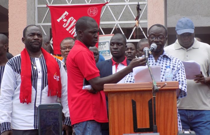 Bassolma Bazié, secrétaire général de la CGT-B, plante ainsi le décor. Il invite ses camarades à relever le front. Les manifestants s’organisent au niveau du carrefour faisant face à la Bourse du travail. Les consignes données sont : « Ne pas provoquer, marcher silencieusement pour ensuite revenir à la Bourse du Travail » !