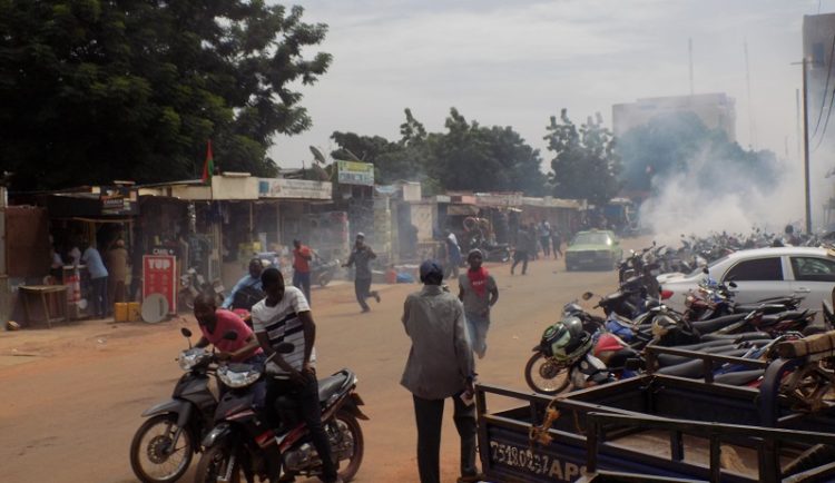 Désordre. Bassolma Bazié esquive de justesse une bombe lacrymogène. Un motocycliste l’extirpe du chaos gazeux. Le « général » disparaît loin dans la fumée. Il rejoint, cahin-caha, la Bourse du Travail. Les autres manifestants sont également chargés au lacrymogène. C’est la débandade et le sauve-qui-peut. Sandales, sacs, chapeaux, chemises et autres biens errent désormais sur le goudron. La scène rappelle l’insurrection populaire de 2014 et la résistance au putsch de 2015.
