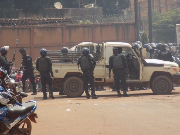 10h 28. Les manifestants sont déjà à la Place des cinéastes. Ils continuent d’avancer. Au niveau de la Place du Grand-Lyon, vers le siège de la nationale de l’électricité (SONABEL), des forces de sécurité débarquent. C’est le trac. Ça sent la matraque. « Je sens que ça va chauffer », murmure une dame, le visage déjà apeuré.