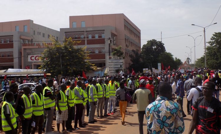 Bassolma Bazié, secrétaire général de la CGT-B, plante ainsi le décor. Il invite ses camarades à relever le front. Les manifestants s’organisent au niveau du carrefour faisant face à la Bourse du travail. Les consignes données sont : « Ne pas provoquer, marcher silencieusement pour ensuite revenir à la Bourse du Travail » !
