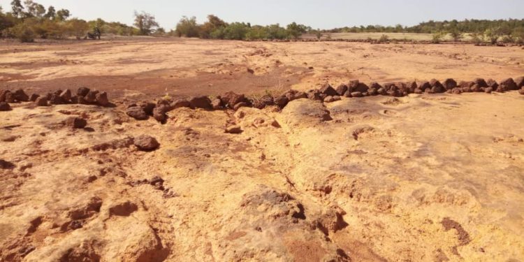 Dans cette partie, nous découvrons un sol dégradé, en cours de réparation par les méthodes évoquées plus haut, précisément, celle des cordons pierreux. A côté de ce sol, un champ bien garni de sorgho, petit mil, signe que les méthodes appliquées ont porté fruits.