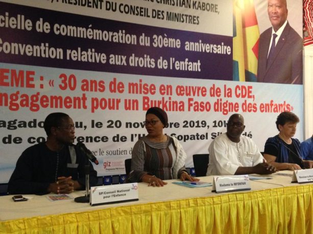 La Convention relative aux droits de l’enfant (CDE) a aujourd’hui 30 ans. 30 ans de lutte pour la protection de l’enfant. La cérémonie commémorative a eu lieu ce mercredi 20 novembre 2019 à Ouagadougou, sous le thème « 30 ans de mise en œuvre de la CDE, un nouvel engagement pour un Burkina Faso digne des enfants ».