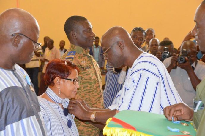 Cette cérémonie d’ouverture a aussi été une cérémonie de distinction. 7 acteurs de la littérature burkinabe ont été élevés au rang de chevalier de l’ordre du mérite des arts, des lettres et de la communication avec agrafe littérature écrite et orale.