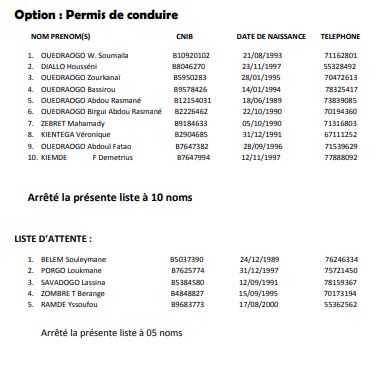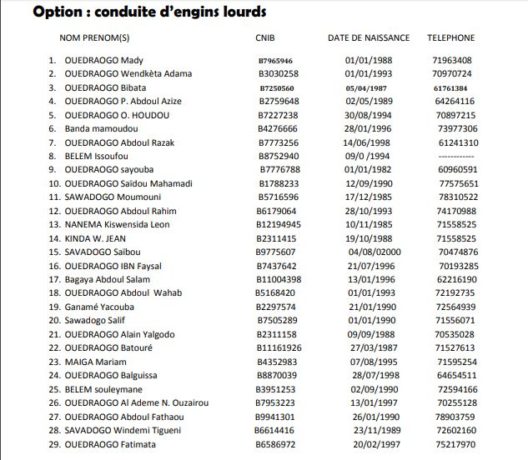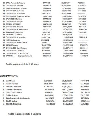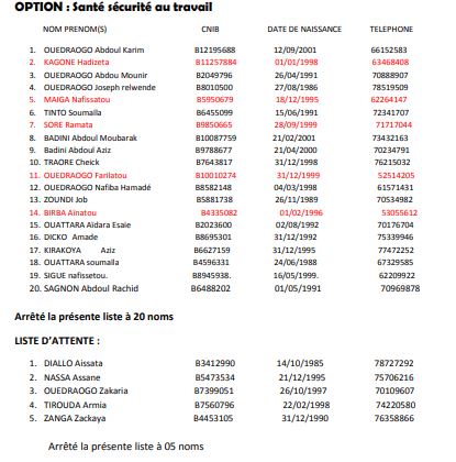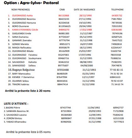 Sous réserve d’un contrôle approfondi, les candidats dont les noms suivent sont déclarés admis au test de recrutement des cents (100) boursiers pour la formation initiée par Ministre de l’Agriculture et des Aménagements Hydro-agricoles.