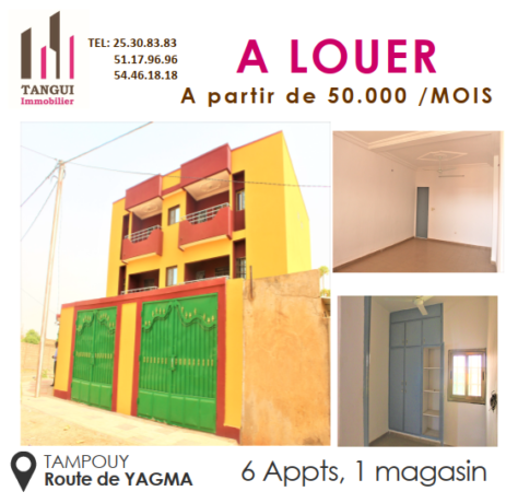 • 01 Appartement F2 : 01 chambre, 01 salon, 01 salle de bain, 01 cuisine    Loyer : 50.000 f CFA