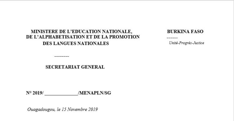 • Immeuble de l’Education, 2ème étage, sis Boulevard de l’Indépendance, 01 BP : 512 Ouaga 01, site : mess.gov.bf;