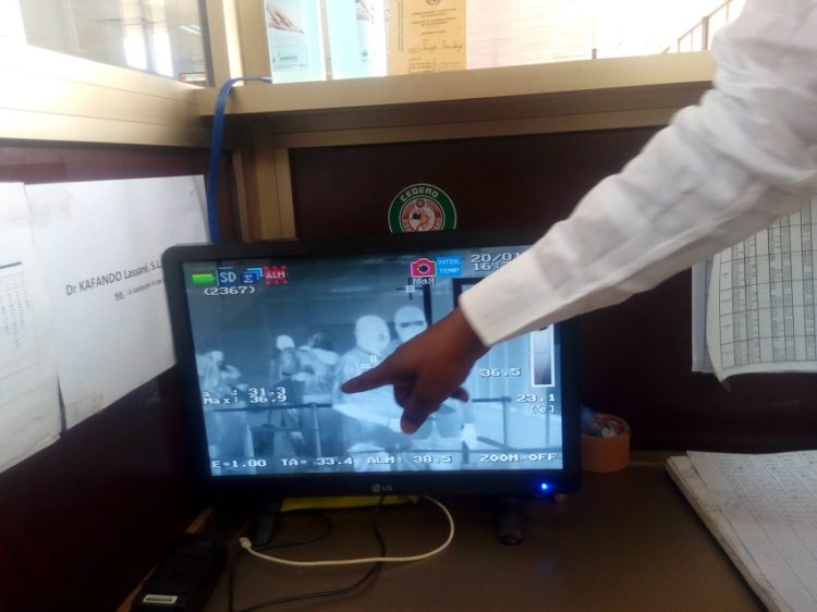 « Pendant qu’ils sont dans la queue pour venir faire d’abord les formalités sanitaires, il y a une caméra qui est pointée directement sur l’ensemble des passagers et cette camera est paramétrée avec une température limite corporelle de 38°. La caméra est reliée à un écran qui est dans le box où est l’agent de santé chargé de vérifier les carnets de santé. Et il y a l’alarme aussi bien sonore que visuelle qui marque les passagers qui ont une température supérieure ou égale à 38° », a expliqué Dr Wilfrid Ouédraogo