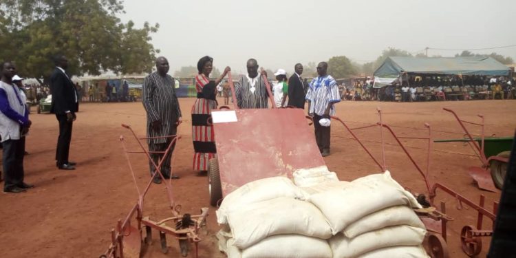 La cérémonie a été marquée par la remise de matériels à des producteurs et productrices de la région : 14 charrettes 28 brouettes 5 tonnes 1 demi tonne d’engrais, d’une valeur de plus de cinq millions de F CFA.