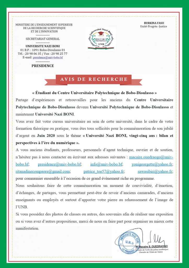 Accueil/Actualité/communiqués de presse/AVIS DE RECHERCHE: « Étudiant du Centre Universitaire Polytechnique de Bobo-Dioulasso » AVIS DE RECHERCHE: « Étudiant du Centre Universitaire Polytechnique de Bobo-Dioulasso » Webmaster B24 Envoyer un courriel 17/03/20200 Moins d’une minute Partage 👉🏽 Cliquez ici pour télécharger l’avis de recherche en pdf Webmaster B24 Envoyer un courriel 17/03/20200 Moins d’une minute Linkedin Messenger Messenger WhatsApp Telegram Partager par email Imprimer