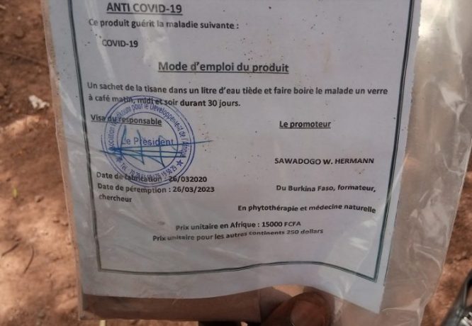 Le chercheur en médecine naturelle, Wendlarima Hermann Sawadogo, présentait à la presse, le lundi 30 mars 2020 à Ouagadougou, deux produits composés de tisanes. Le premier « traite » le COVID-19 et le deuxième « prévient » ladite maladie.