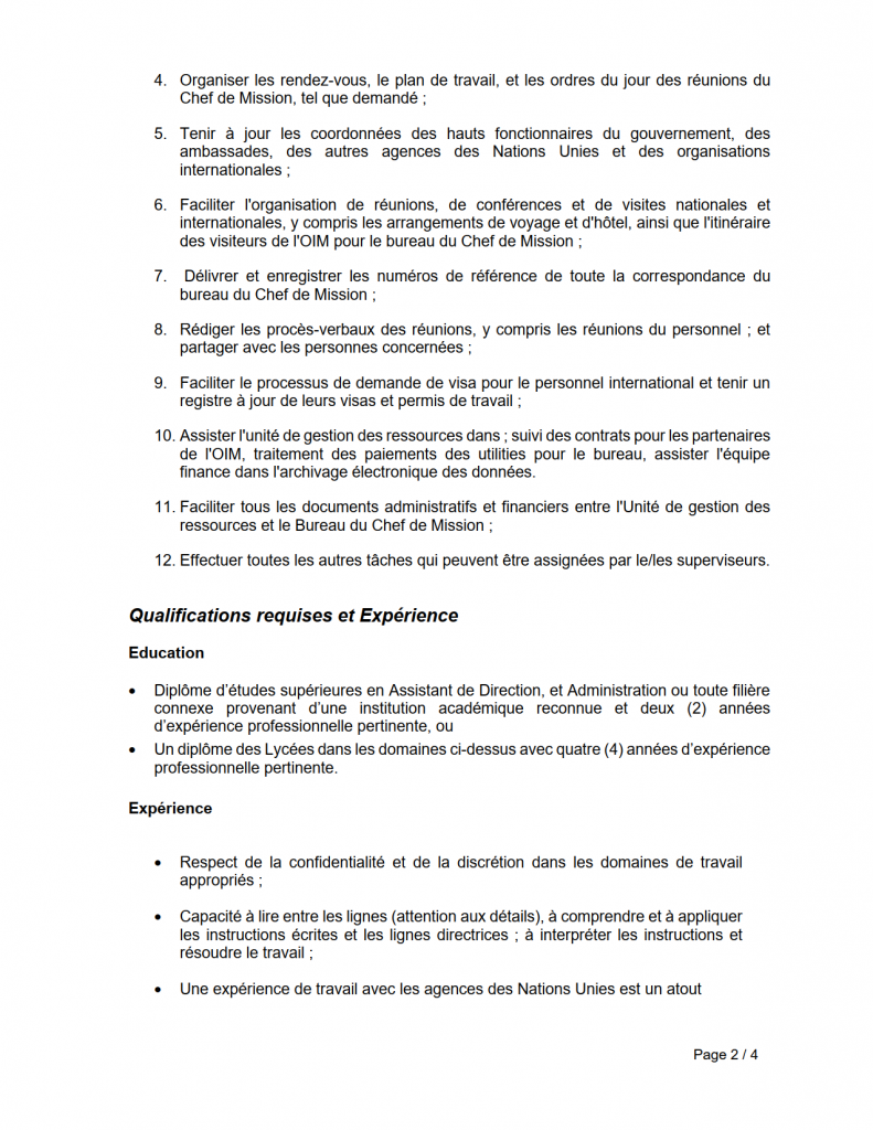 Offre d’emploi: Assistant(e) Administratif – Ouagadougou, Burkina Faso (OIM)