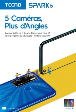 La demande pour les smartphones innovants de Tecno mobile en Afrique est grandissante, la marque se trouve donc être ravis de lancer le Spark 5 pour le bonheur des utilisateurs. En tant que marque fondée sur le principe de l’innovation et la valeur des technologies d’intelligence artificielle, les cinq caméras du nouveau Spark 5 séduiront les utilisateurs à la recherche d’un smartphone puissant à un prix accessible. Les utilisateurs peuvent profiter d’une vie plus branchée en suscitant leur créativité grâce à la technologie de pointe de la caméra au bout des doigts et en partageant facilement le contenu avec leurs amis et leurs familles par l’entremise des médias sociaux. »