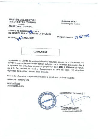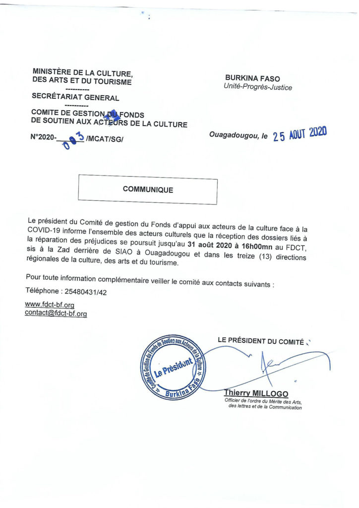Communiqué: Prolongation de la réception des dossiers de l’ensemble des acteurs culturels liés à la réparation des préjudices