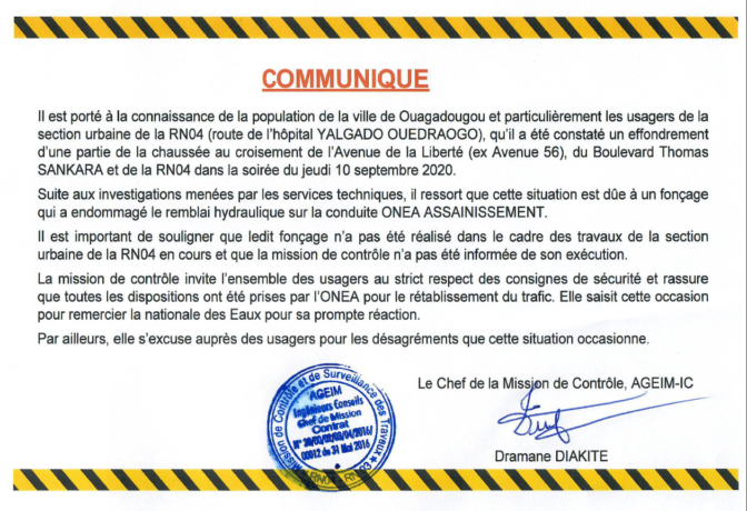 Trou sur la route de l’hôpital Yalgado : L’entreprise AGEIM-IC s’explique