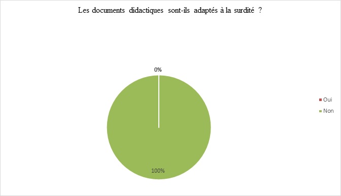 « Les documents didactiques des enfants normo-entendants sont imposés aux enfants sourds. Leurs enseignants ne sont pas outillés en documents spécifiques pour la didactique de la grammaire. Les apprenants sourds, comprenant difficilement et étant dans un besoin de visualisation des items d’apprentissages, sont pénalisés. Il s’en suit, pour la classe de sourds, une grande occupation du temps d’apprentissage prévu, pour une très petite progression dans le programme. Pour un cours de grammaire prévu pour une heure de temps, seule 1/8è des tâches est exécuté avec une assez bonne compréhension des apprenants, soit 12,5% des enseignements prévus ».