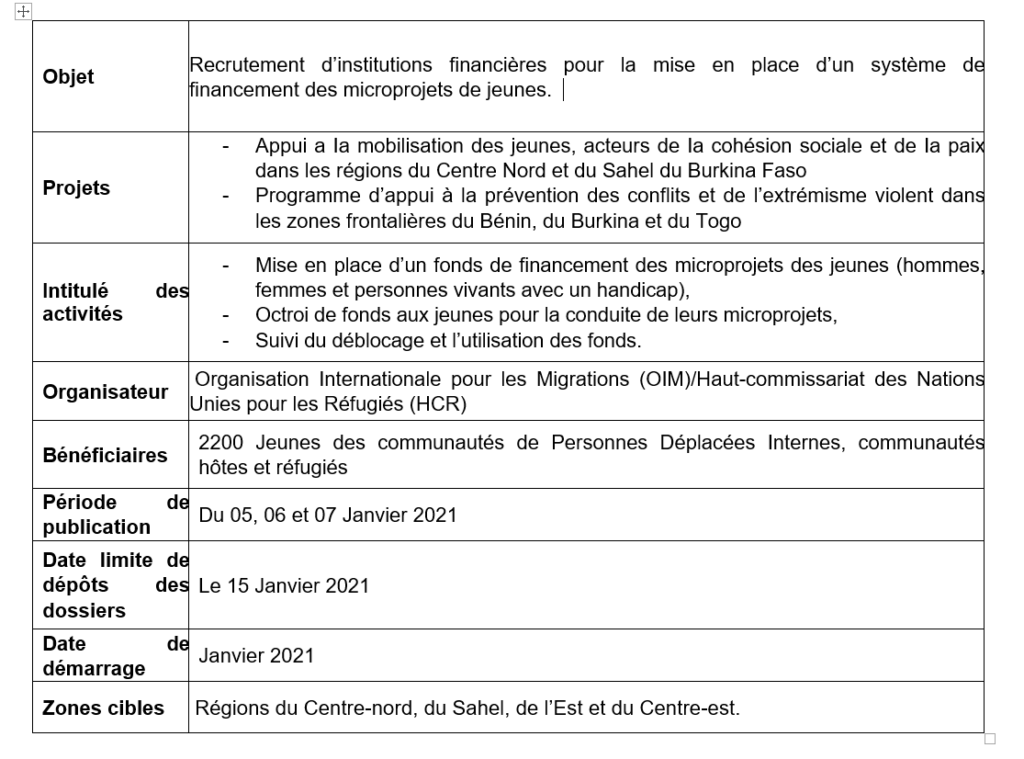 OIM: Recrutement d’institutions financières pour la mise en place d’un système de financement des microprojets de jeunes.