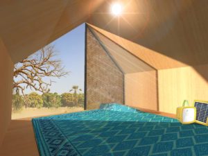 « Il est fixable et démontable en une journée sur une charrette ou sur des pneus usés remplis de sable. L’abri préserve aussi des inondations et autres contraintes climatiques avec une capacité d’accueil de deux à quatre personnes. Mais il est possible d’assembler plusieurs abris pour répondre aux besoins d’une famille élargie », poursuit-il.