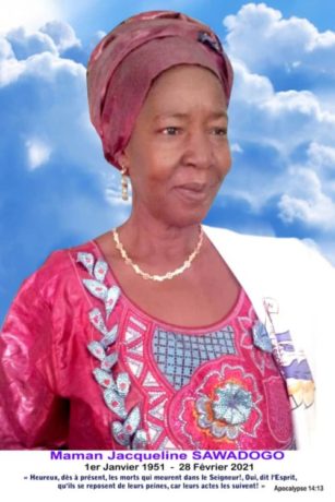 SAWADOGO Jacqueline, à l’âge de 70 ans.