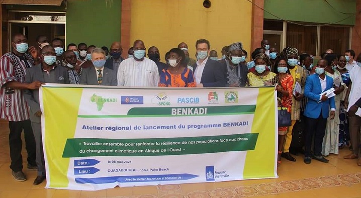 Parti du principe que « Renforcer la société civile contribue à une société ouverte et renforce la démocratie et la primauté des droits », le gouvernement Néerlandais réunit un consortium d’ONG de quatre (4) pays d’Afrique de l’Ouest dont l’objectif est d’améliorer l’efficacité des politiques publiques sur les changements climatiques à travers le programme « Benkadi » qui signifie « Travailler ensemble dans la même direction » en langue Bambara. Dans le cadre du démarrage des activités du programme dans les quatre pays du consortium, le Secrétariat Permanent des ONG (SPONG), qui assure la coordination régionale du Programme, a procédé au lancement officiel ce jeudi 6 mai 2021 à Ouagadougou en présence des délégations des autres pays.