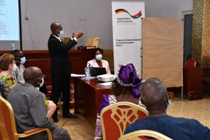 Du 25 au 26 mai 2021 s’est tenu à Ouagadougou, l’Atelier de Planification Stratégique du Programme Décentralisation et Cohésion sociale (PDCS) financé par la coopération allemande et exécuté par la GIZ. La cérémonie d’ouverture de l’atelier a été présidée par le Secrétaire Général du Ministère de l’Administration Territoriale et de la Décentralisation (MATD), Monsieur Pierre BICABA qui a remercié la GIZ pour les résultats atteints au cours de la phase antérieure du programme, connu sous l’appellation Programme Décentralisation et Développement Communal (PDDC).