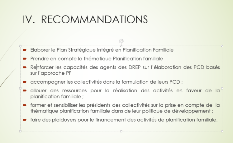 Les données, a-t-elle ajouté, lorsqu’elles sont disponibles, le sont exclusivement auprès des associations et ONG qui mènent le plaidoyer en faveur de l’allocation de ressources pour la PF dans les budgets des communes.