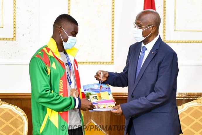 Ce vendredi 13 août 2021, les Etalons olympiques ont été reçus par le Premier ministre, Christophe Dabiré. Une occasion pour Hugues Fabrice Zango de présenter sa médaille olympique de bronze au Chef du Gouvernement burkinabè. Au cours de cette visite, ce dernier a reçu les clés d’une villa des mains du patron de la Primature.