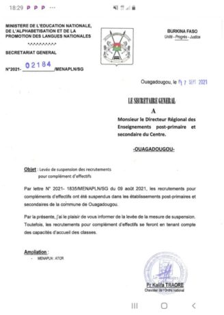 Les lycées et collèges de Ouagadougou autorisés à recruter de nouveau pour complément d’effectifs