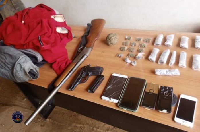 En collaboration avec la Brigade Spéciale d’Investigation et de lutte Anti-Terroriste (BSIAT), la Gendarmerie Nationale et le Procureur du Faso près le Tribunal de Grande Instance Ouaga II, il a été interpellé avec trois (03) de ses acolytes. Plusieurs objets ont également été saisis notamment un pistolet automatique, un fusil de chasse, des téléphones portables, du cannabis et des blousons.