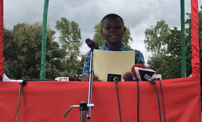 La représentante des élèves, Épiphanie Andréa Kambou, a demandé au ministre son soutien pour le retour de leurs camarades de Djigoué à l’école.