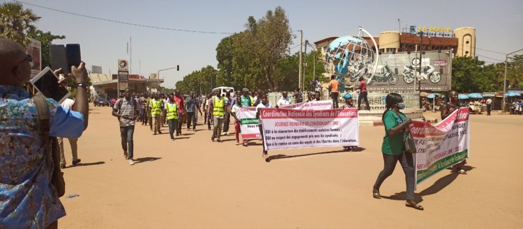 En solidarité avec les Forces de défense de sécurité, la marche-meeting de la coordination nationale des syndicats de l’éducation (CNSE) s’est finalement transformée en une marche silencieuse. Mais les manifestants ont pu déposé un mémorandum contenant leurs revendications au ministère en charge de l’éducation nationale.